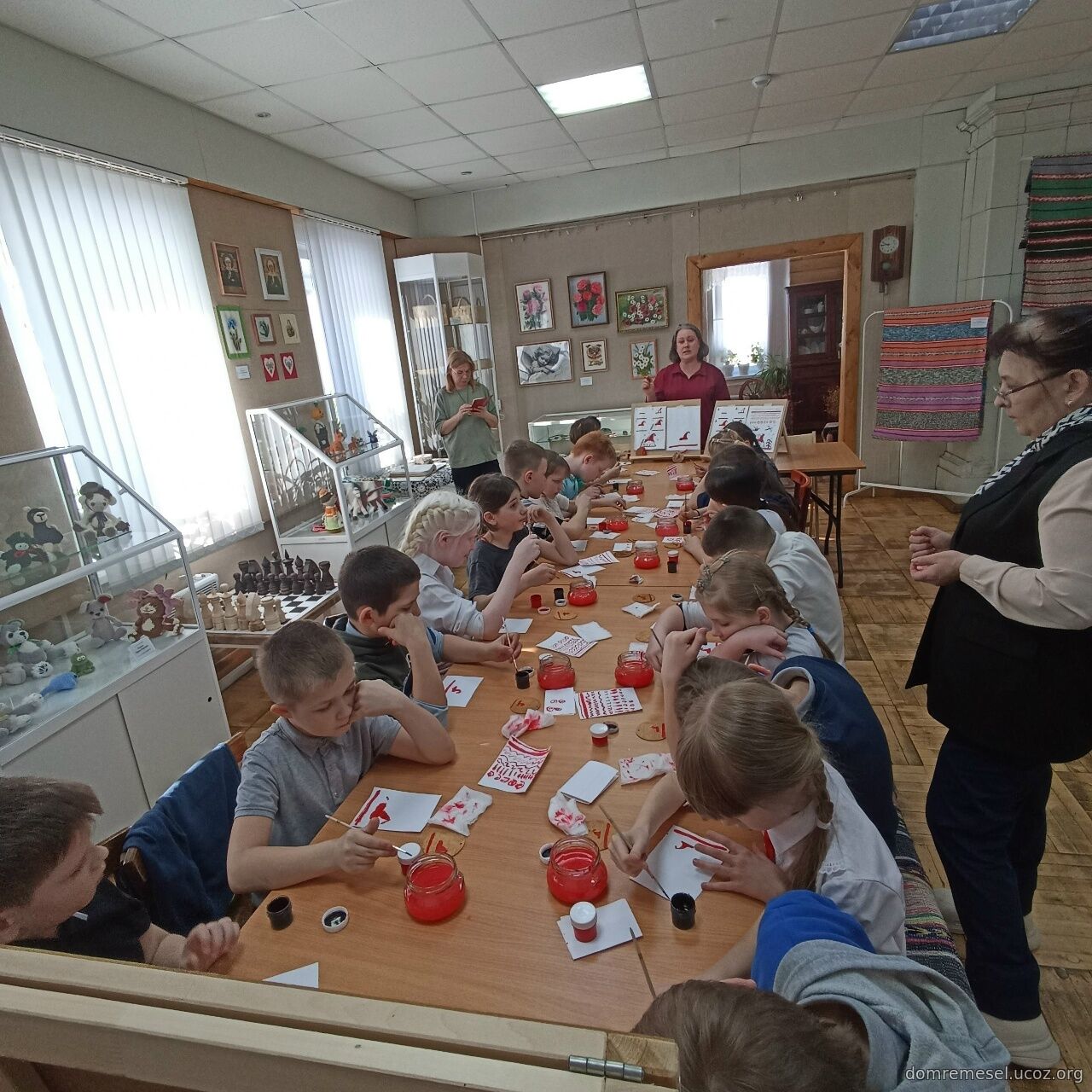 Сегодня в Доме ремесел прошел мастер-класс по изготовлению декоративного украшения «Мезенский конь». Занятие для учащихся 3б класса (кл. рук. Т.В. Мергасова) провела руководитель образцовой самодельной студии росписи по дереву «Забава» А.В. Конева.