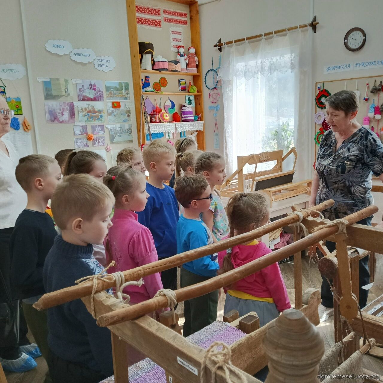 Педагоги и воспитанники подготовительной группы «Ромашки» детского сада «Подснежник» п. Подосиновец побывали в студии ткачества и вязания «КлубОк рукоделия» Подосиновского Дома ремесел. Руководитель студии, мастер народных художественных промыслов Кировской области А.Н. Бетехтина рассказала детям о таком традиционном ремесле, как ткачество, и показала, как из полосок ткани получаются красивые тканые изделия. Ребята с удовольствием попробовали свои силы на ткацком стане. Полученные знания и умения пригодятся детям и педагогам в процессе реализации проекта «Мастеровята», целью которого является интеграция традиционной народной культуры в систему дошкольного образования и знакомство детей с народными промыслами Вятского края.